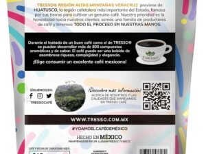 - Disfruta del auténtico sabor del café veracruzano con el Café Tresso Veracruz. Este café de grano entero, cultivado en las altas montañas de Veracruz, ofrece un sabor inigualable, con notas afrutadas y una acidez equilibrada. Perfecto para quienes buscan una experiencia de café premium.